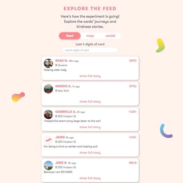In order to track the kindness, we made a website allowing participants to see how far their kindness has traveled. Explore it here.